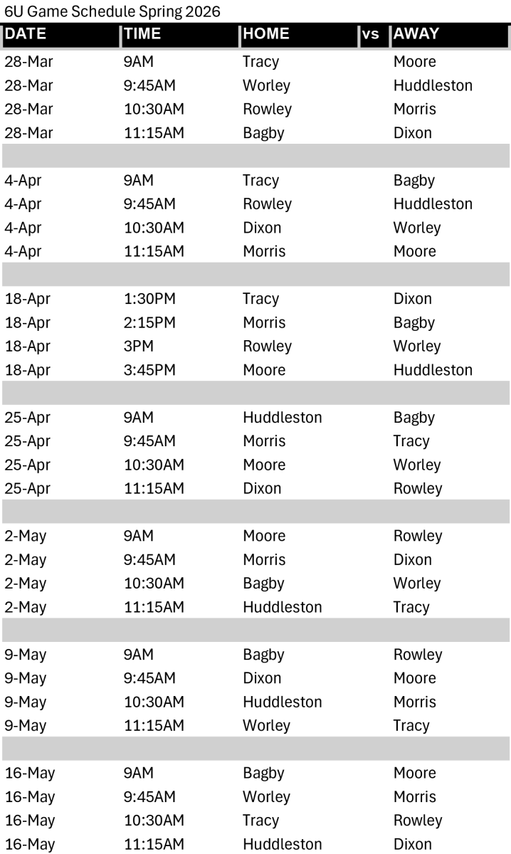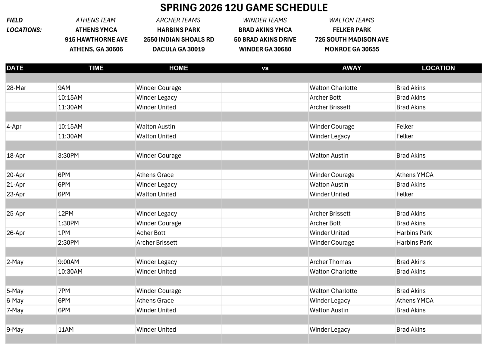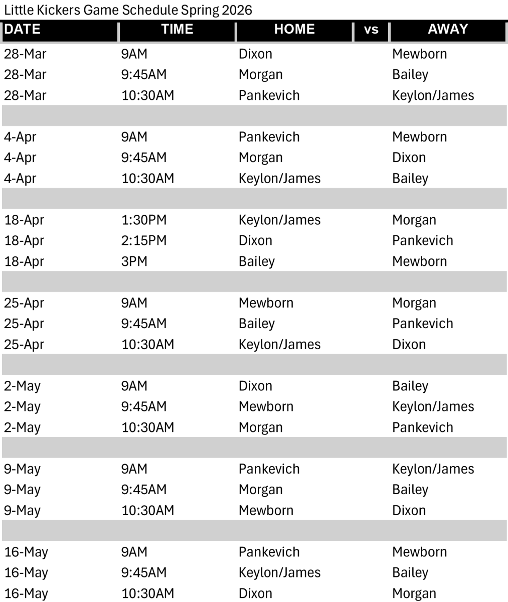 Brad Akins YMCA Soccer Schedules