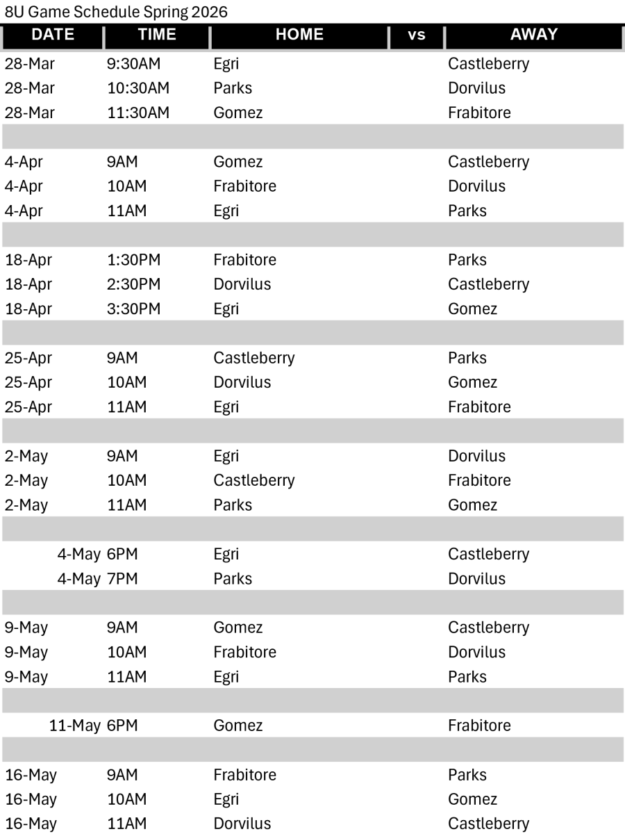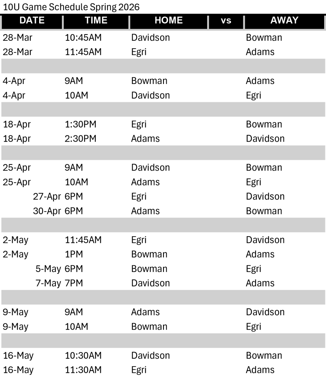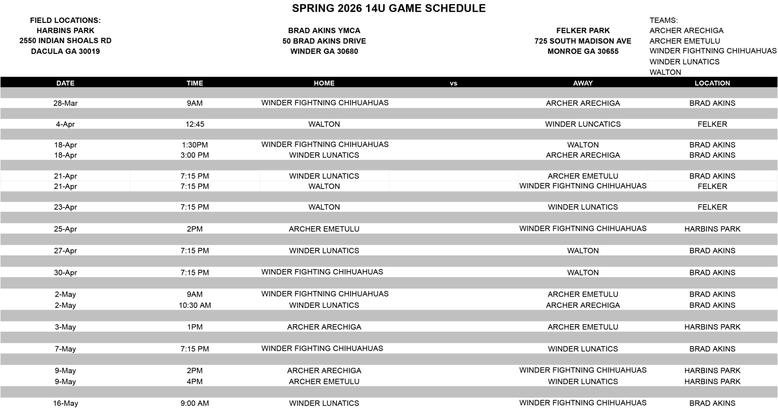Brad Akins YMCA Soccer Schedules