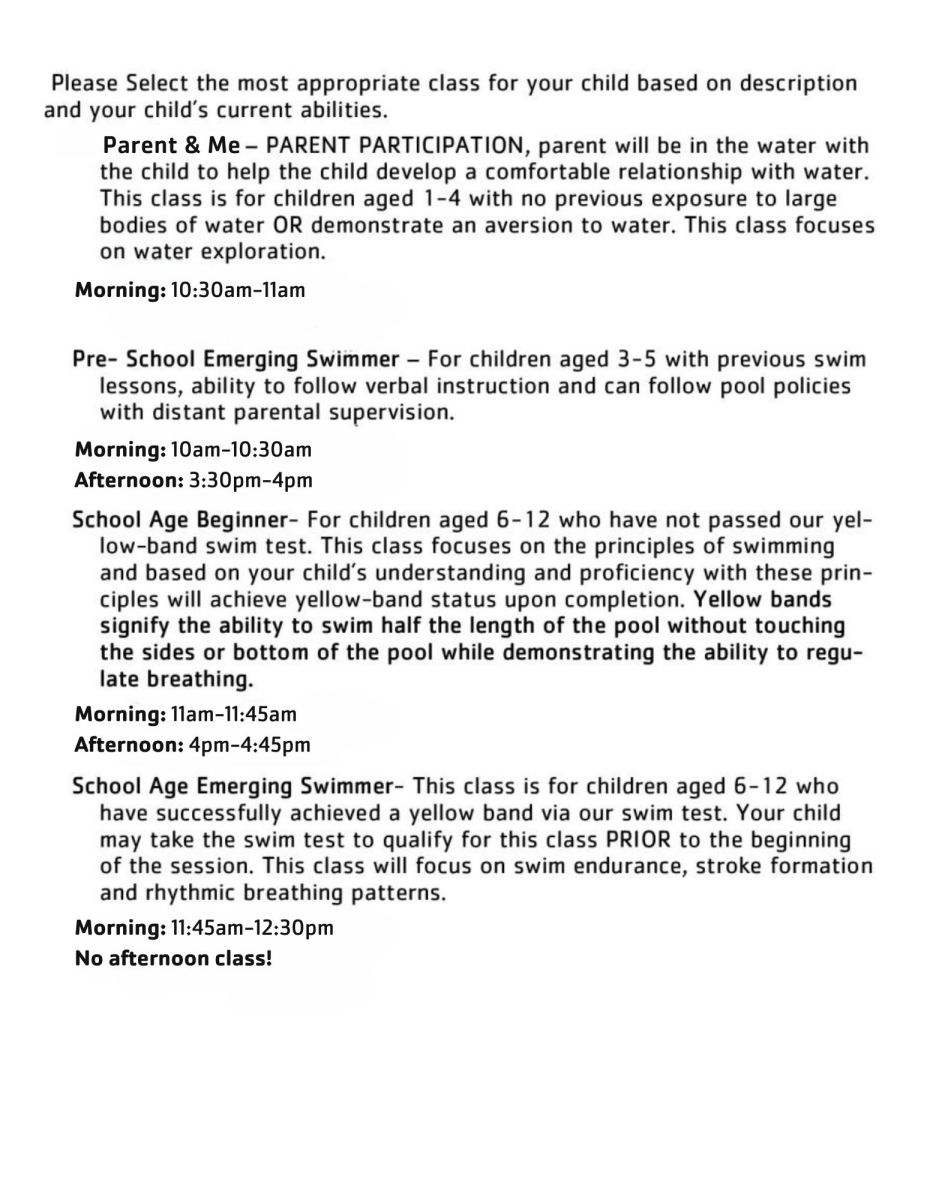 Private lessons are a one-on-one swim lesson experience. Semi-Private lessons consist of 2 individuals (responsible for creating own group). Limited Spots Available!